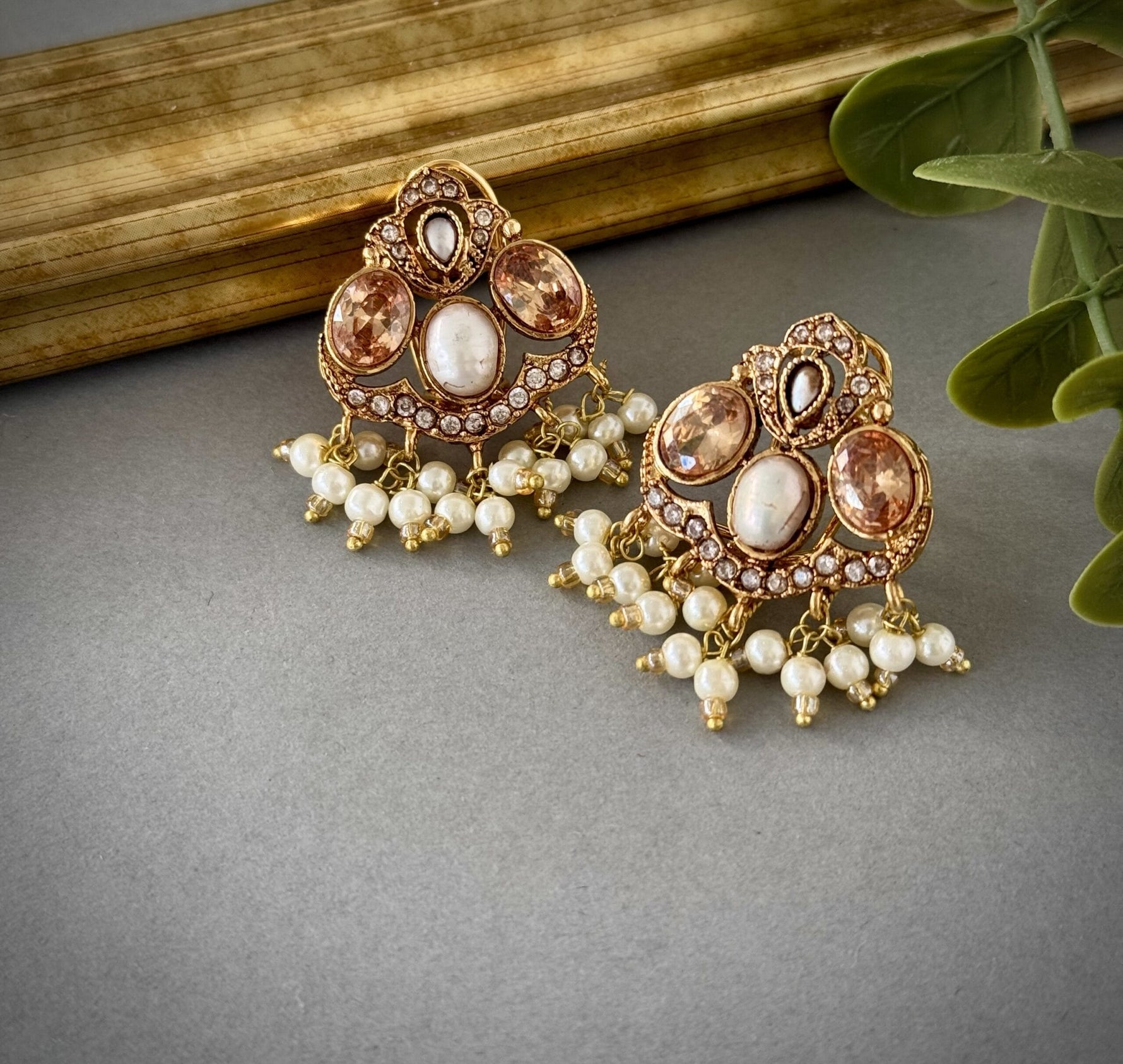 Unit price perAdd elegance to any look with these stunning gold-plated stud earrings, featuring champagne zircons, lustrous baroque pearls, and silver zircons.